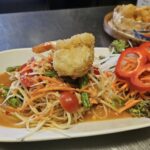 Papaya Salat mit Klebe Reis und Chicken Wings