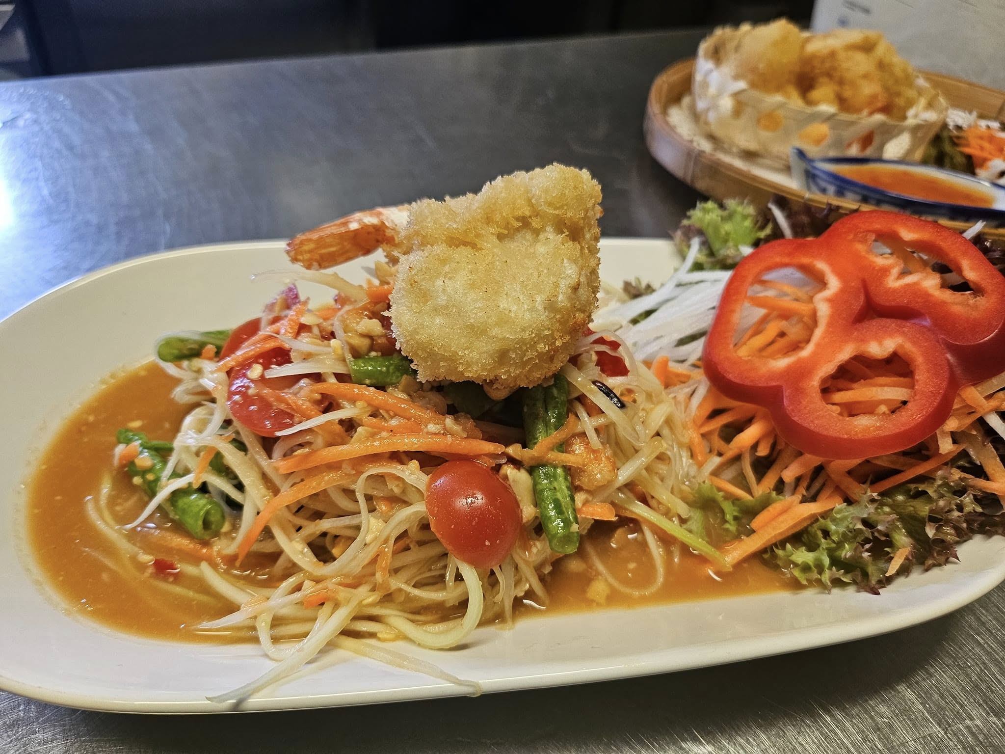 Thai Salat mit Papaya, Karotten, Tomaten und Chili